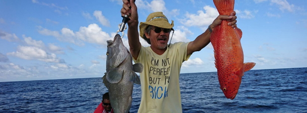 | Giant Grouper (Epinephelus lanceolatus) Leopard Coral Grouper (Plectropomus leopardus) Bulefin Trevally (Caranx melampygus) |